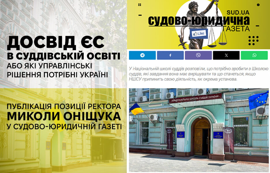 Досвід ЄС в суддівській освіті або які управлінські рішення потрібні Україні – позиція НШСУ (публікація ректора Миколи Оніщука у Судово-юридичній газеті)