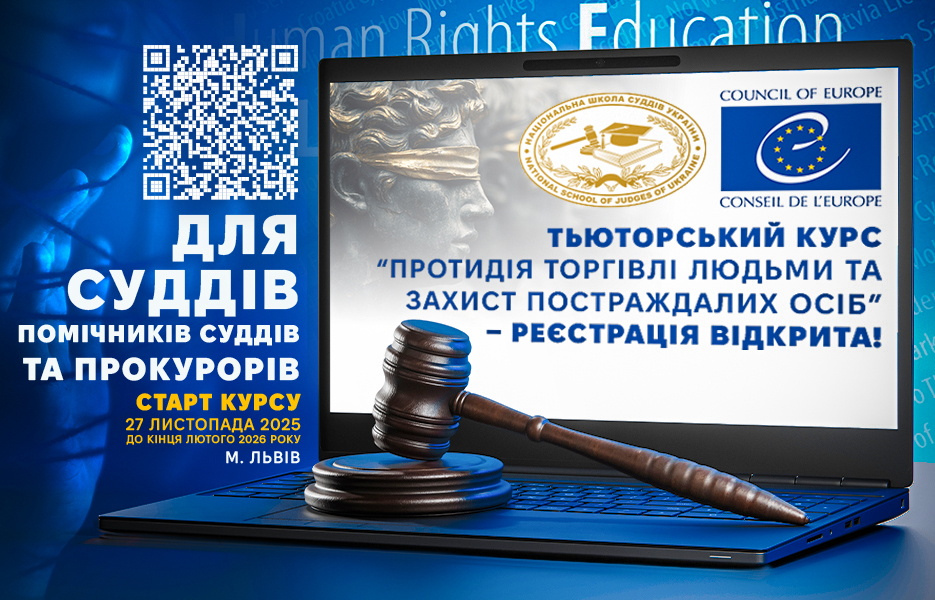 Національна школа суддів України запрошує суддів та помічників суддів взяти участь у тьюторському курсі Ради Європи HELP “Протидія торгівлі людьми та захист постраждалих осіб”.