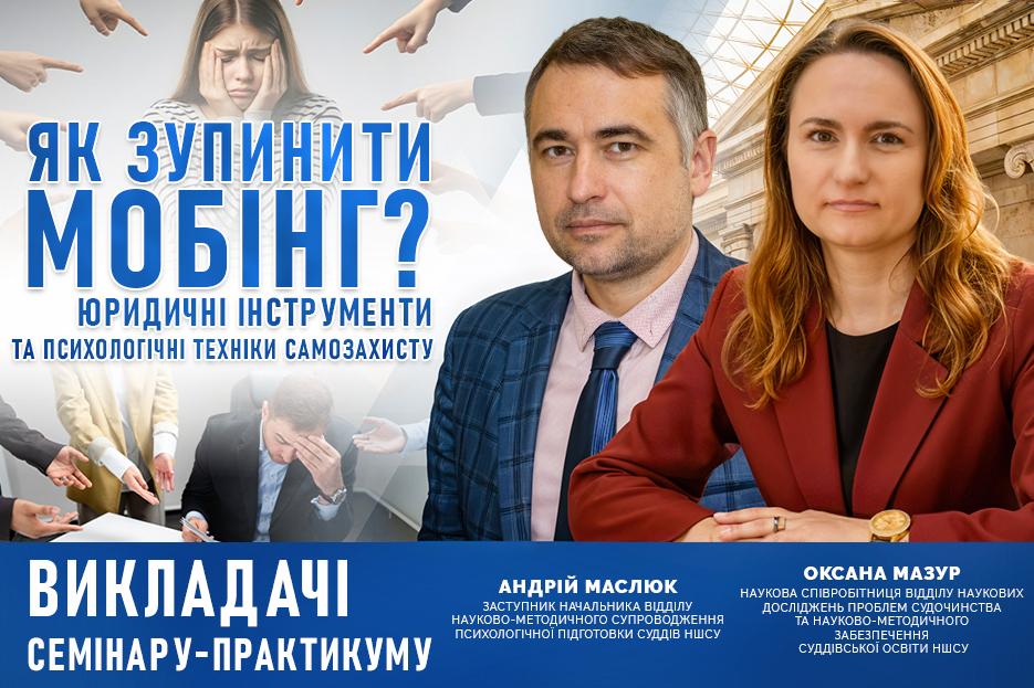 Психологічний погляд на проблему, дієві стратегії попередження та протидії мобінгу представив заступник начальника відділу науково-методичного супроводження психологічної підготовки суддів НШСУ Андрій Маслюк, проаналізувавши відповідну судову практику.