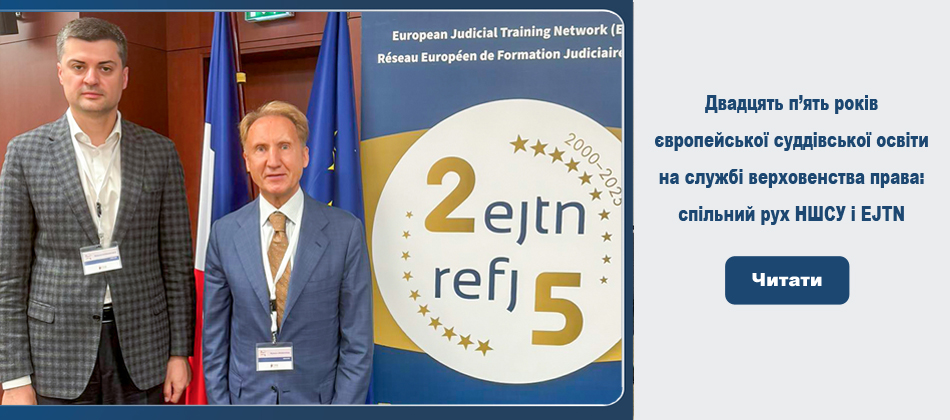 Хаб знань з міжнародного кримінального права Академія європейського права (ERA) Європейська мережа суддівської освіти (EJTN) Європейський інститут державного управління (EIPA) Дайджест освітніх заходів Національної школи суддів України на листопад 2025 року Запрошуємо опублікувати наукову статтю у четвертому номері 2025 року фахового журналу “Слово НШСУ”