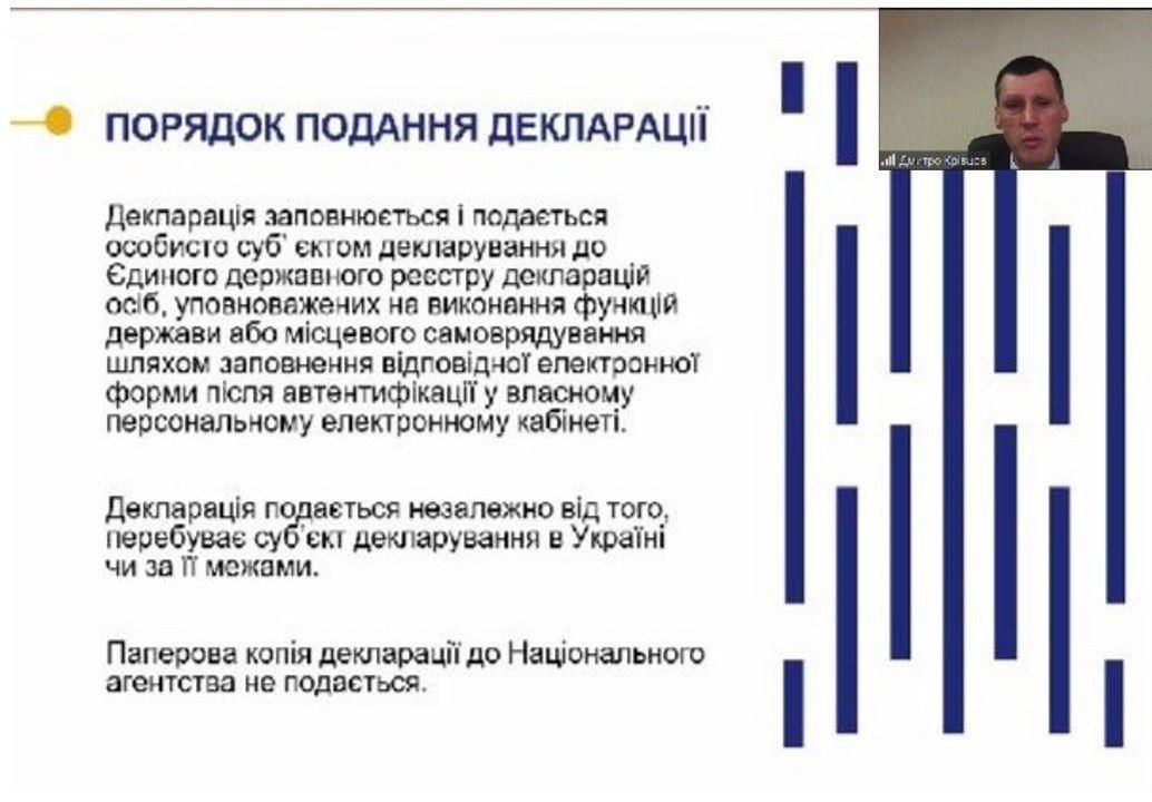 Співробітникам територіальних управлінь Служби були надані практичні рекомендації щодо заповнення електронної декларації, а також особливості декларування у воєнний час.