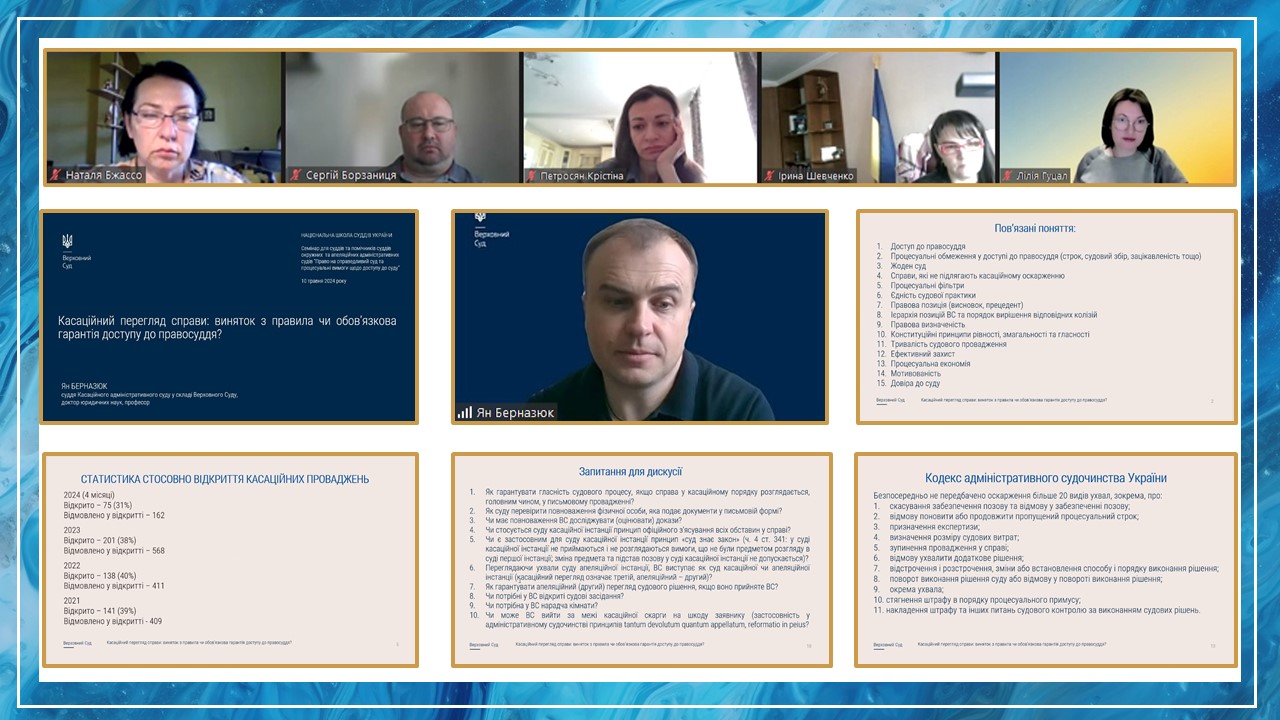 10 травня 2024 року Національна школа суддів України провела семінар для суддів і помічників суддів окружних та апеляційних адміністративних судів “Право на справедливий суд та процесуальні вимоги щодо доступу до суду”.
