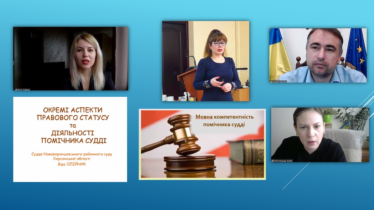 Окремі правові аспекти діяльності помічника судді висвітила суддя Нововоронцовського районного суду Херсонської області Віра Олійник. Заступник начальника відділу науково-методичного супроводження психологічної підготовки суддів Національної школи суддів України Андрій Маслюк під час лекції поглибив знання слухачів щодо психологічних компетентностей під час виконання професійних обов’язків та повноважень, а суддя Тернопільського міськрайоннного суду Тернопільської області Анна Мостецька підвищила рівень обізнаності слухачів з міжнародних норм цифровізації та безпеки інформації.