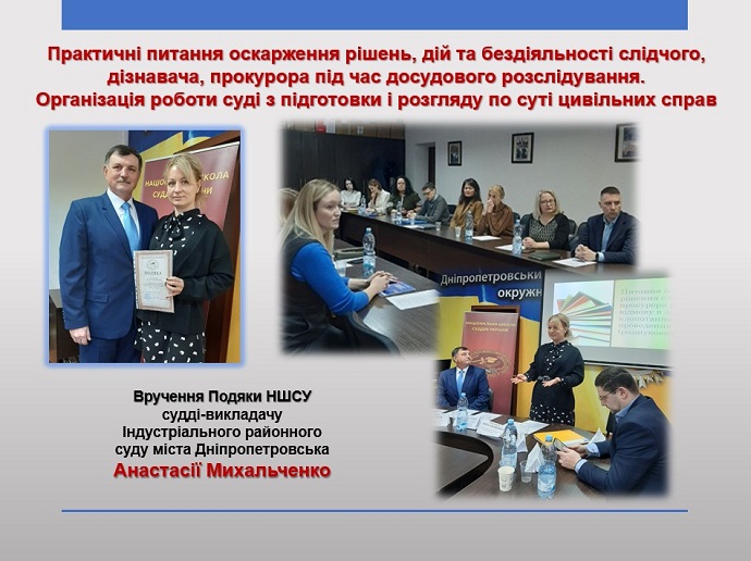 Наприкінці семінару суддям-викладачам було вручено Подяку Національної школи суддів України, а слухачам – Сертифікат НШСУ.