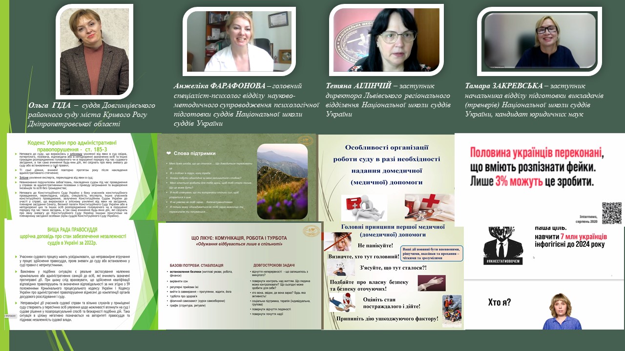 – Впровадження сервісів для вразливих користувачів суду. Спілкування з вразливими категоріями осіб: потерпілими, свідками. Особливості комунікації судового розпорядника з учасниками бойових дій та постраждалими від воєнних злочинів;