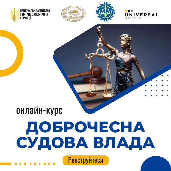 Національною школою суддів України спільно з Національним агентством з питань запобігання корупції та Асоціацією розвитку суддівського самоврядування України розроблено дистанційний курс для суддів та працівників апаратів судів “Доброчесна судова влада”, презентація якого відбудеться 3 жовтня 2023 року об 11.00 на офіційних YouTube каналах установ.