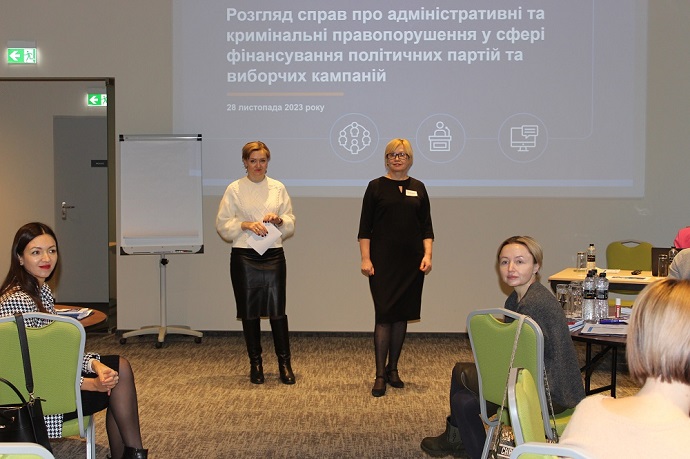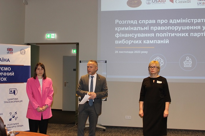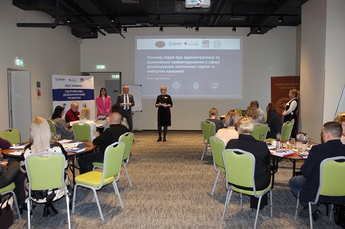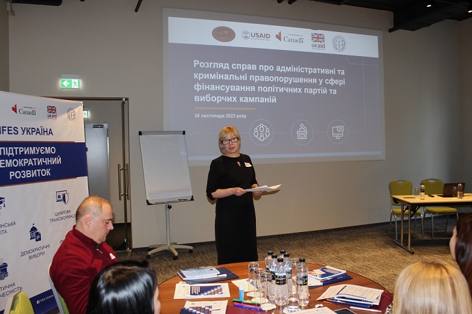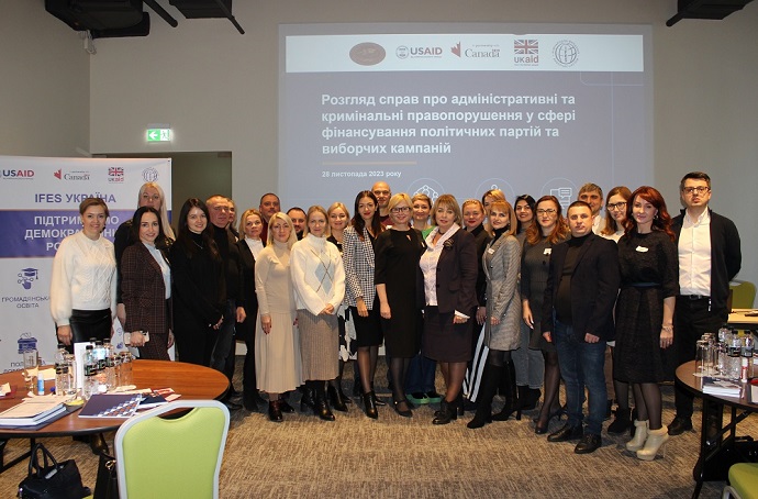 28 листопада 2023 року Національна школа суддів України провела тренінг для українських суддів “Розгляд справ про адміністративні та кримінальні правопорушення у сфері фінансування політичних партій та виборчих кампаній”, організований спільно з Міжнародною фундацією виборчих систем (IFES) за підтримки Агентства США з міжнародного розвитку (USAID), Міністерства міжнародних справ Канади та британської допомоги від уряду Великої Британії.