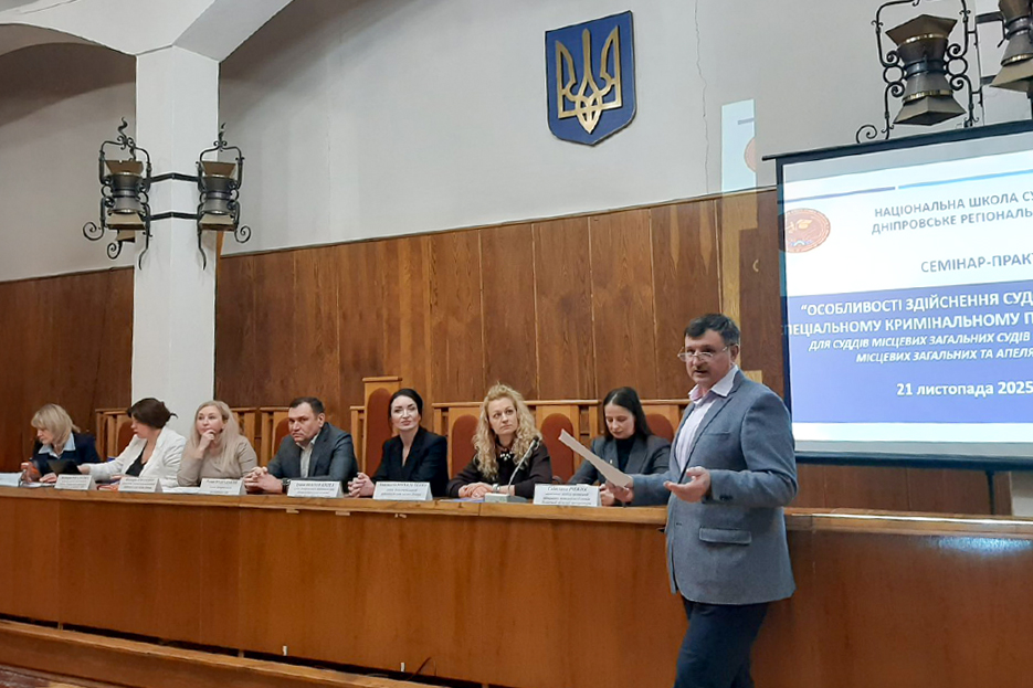 21 листопада 2025 року Дніпровське регіональне відділення Національної школи суддів України провело семінар-практикум для суддів місцевих загальних судів та помічників суддів місцевих і апеляційних судів на тему «Особливості здійснення судового розгляду у спеціальному кримінальному провадженні (in absentia)».