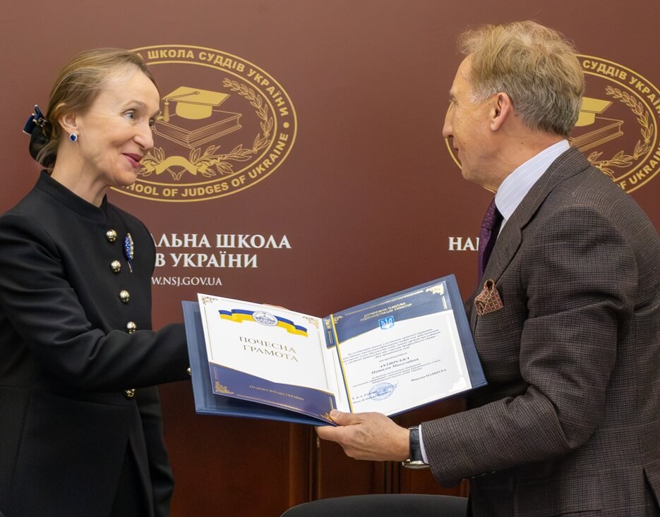 Завершилося засідання урочистою церемонією відзначення працівників НШСУ Почесними грамотами Вищої ради правосуддя (Єлизавета Ковтюк), Вищої кваліфікаційної комісії суддів України (Лілія Карабак) та Державної судової адміністрації України (Наталія Ахтирська, Антон Іванчик, Тетяна Франюк). Також найвищими відзнаками НШСУ було нагороджено працівників Школи – Жанну Дмітрієву, Вікторію Семенюк та Олега Цимбалюка, чия професійна діяльність сприяє розвитку сучасної, ефективної та європейсько-орієнтованої суддівської освіти в Україні.