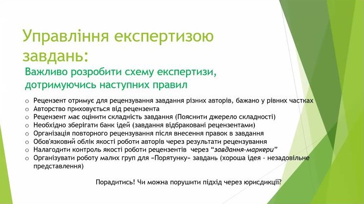 Метою тренінгу є поглиблення теоретичних знань у розробників/рецензентів щодо методології формування та рецензування тестових і практичних завдань, удосконалення вмінь та навичок розробки і рецензування тестових завдань, здійснення аналітичної роботи над помилками, допущеними при розробленні та рецензуванні тестів для конкурсу.