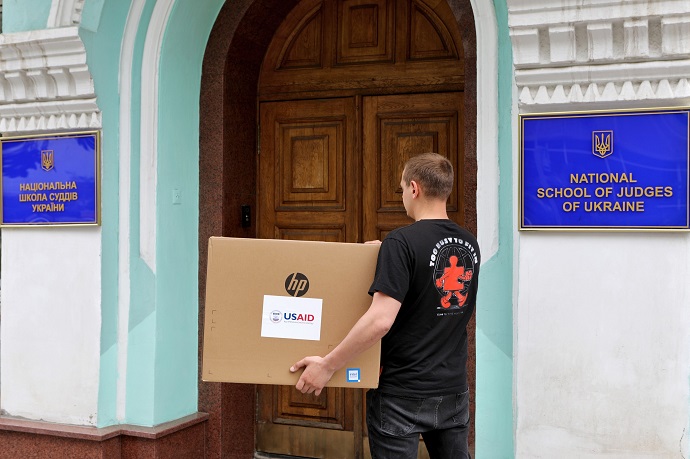У травні 2023 року Агентство США з міжнародного розвитку (USAID) надали допомогу Національній школі суддів України – важливій інституції, яка забезпечує навчання суддів і працівників апарату судів усіх регіонів країни. Ця допомога – стаціонарні комп’ютери, акумулятори та інші резервні джерела живлення – сприятиме діяльності НШСУ з підготовки фахівців судових установ до розгляду справ про воєнні злочини, а також до забезпечення роботи українських судів під час війни.