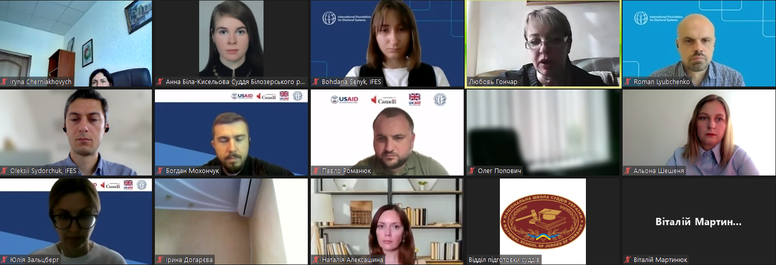 2 серпня 2023 року в місті Києві Національна школа суддів України спільно з Міжнародною фундацією виборчих систем (IFES) провели вебінар стіл “ Розгляд судами справ щодо порушень правил фінансування політичних партій та виборчих кампаній ” з метою підвищення рівня кваліфікації суддів місцевих загальних та апеляційних судів, окружних адміністративних судів.