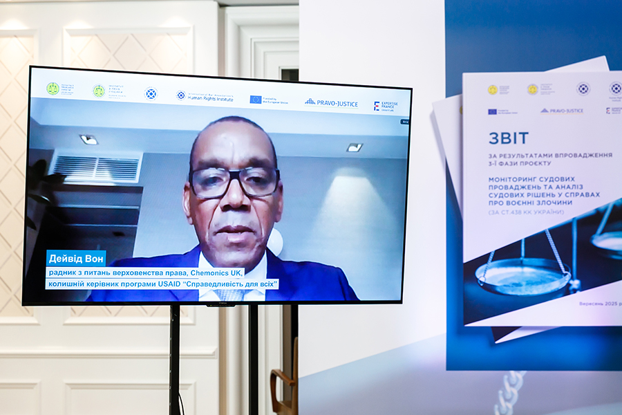 23 вересня 2025 року в Києві відбулася презентація Звіту за результатами третьої фази проєкту “Моніторинг судових проваджень та аналіз судових рішень у справах про воєнні злочини (за ст. 438 КК України)”.