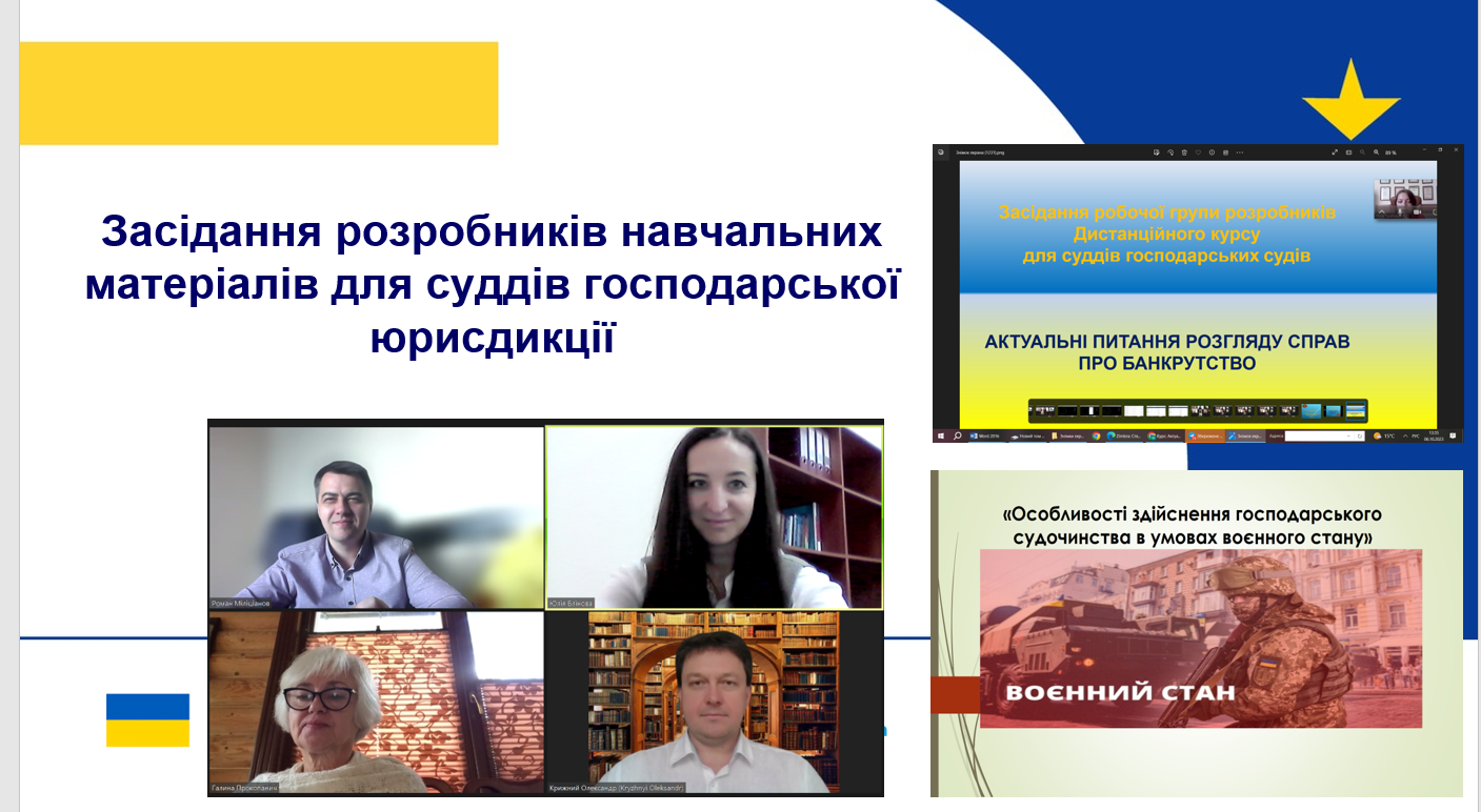 Зокрема, розробники узгодили питання організації семінару для суддів “Особливості здійснення господарського судочинства в умовах воєнного стану”, який відбудеться 10.10.2023 та апробації дистанційного курсу “Актуальні питання розгляду справ про банкрутство”, яка запланована на 30.10.2023.
